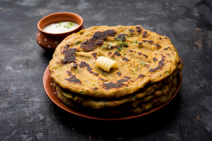 Potatoes provide carbohydrates and fiber, while wheat flour contributes complex carbs and energy. Moderate use of oil or ghee keeps the dish satisfying but not overly heavy.
